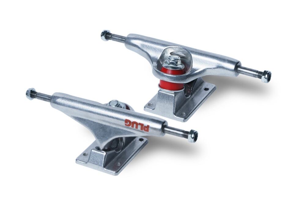 コンプリート付属と同じトラック。 軽い弾きのできる設計で、キングピンの位置はセンター重心で軌道力が抜群。 前後2つで1セット。 サイズ:ハンガー 20.1cm/縦 17.4cm/高16.5cm 重量:373g(アクセルナット無し367g)